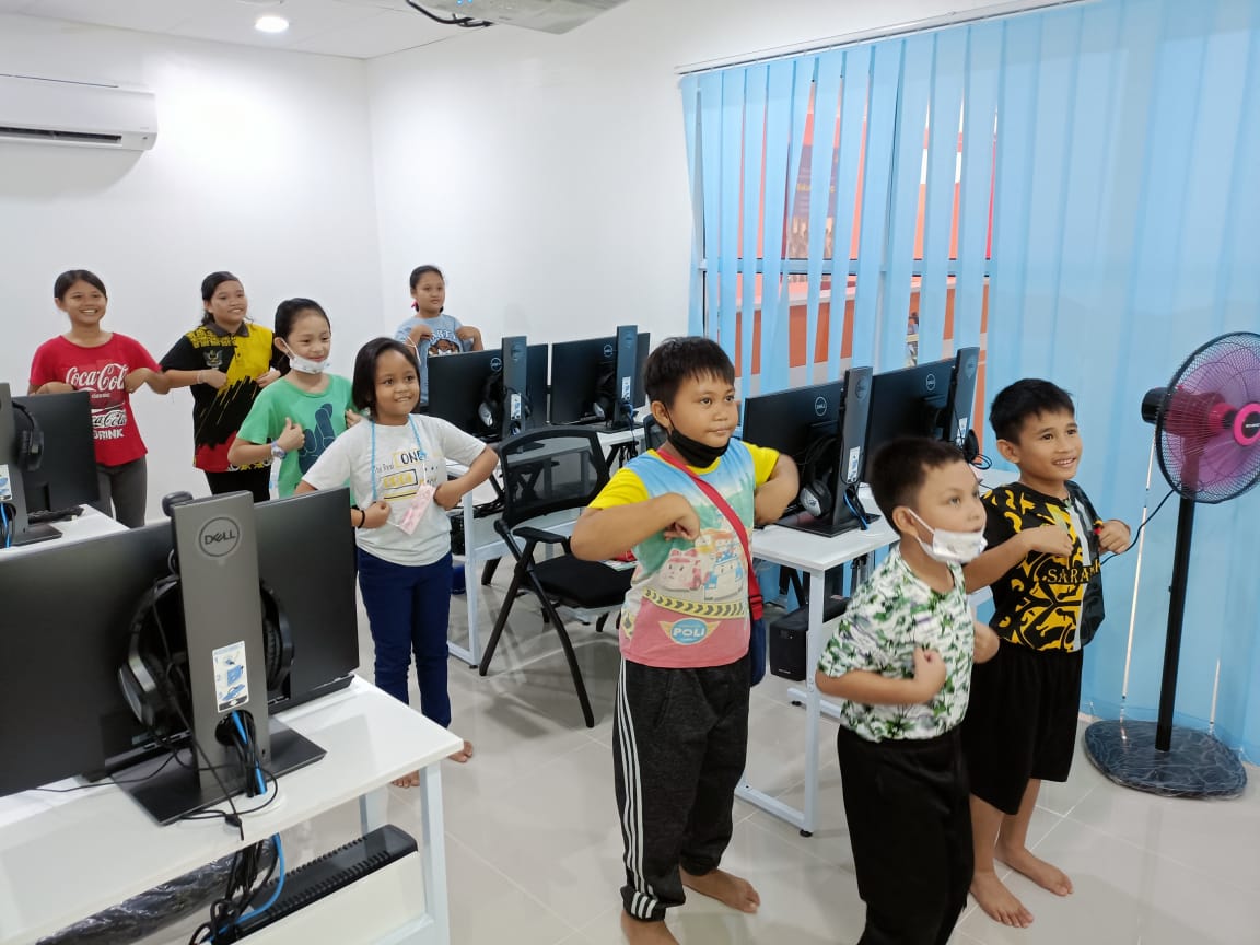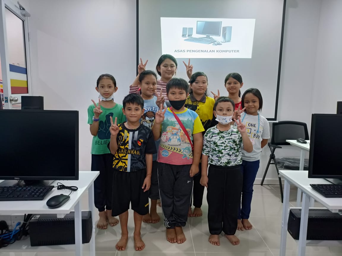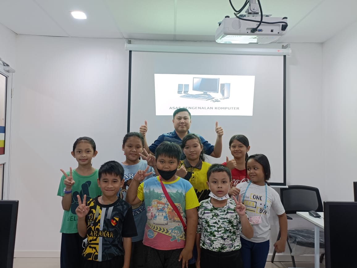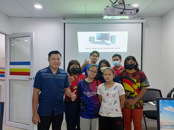 Memperkenalkan asas komputer kepada ahli PEDi Nanga Ngungun yang berumur bawah 12 tahun.
