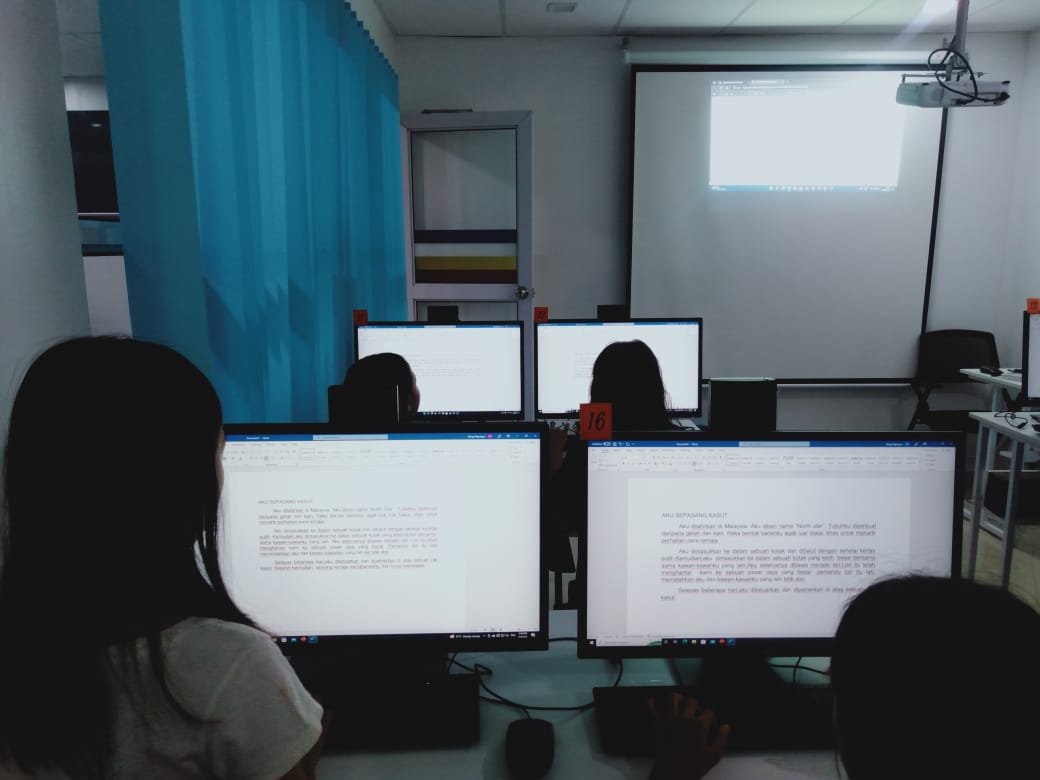 Peserta diminta untuk menulis semula karangan yang telah disediakan oleh pertugas dan memberi tahu bagaimana cara menggunakan keyboard.