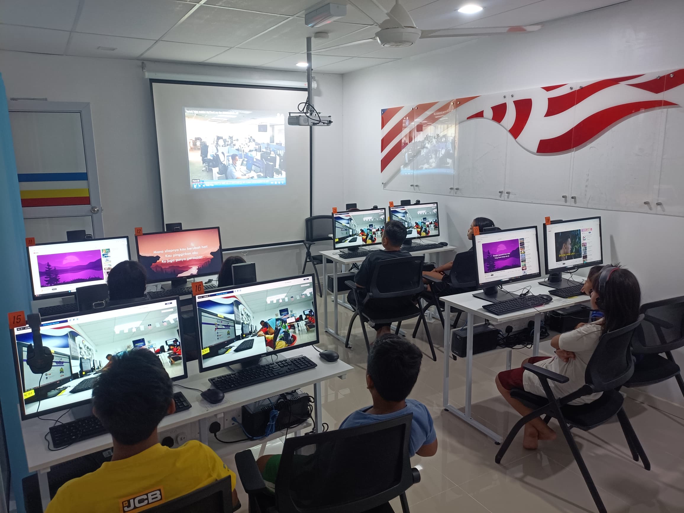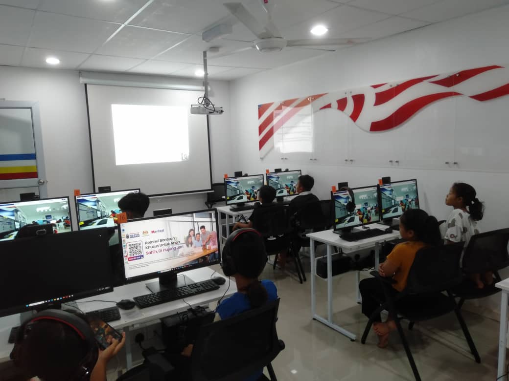 Penerangan melalui tayangan slide dan kanak-kanak diminta untuk menonton video Klik Dengan Bijak (Penipuan Internet).