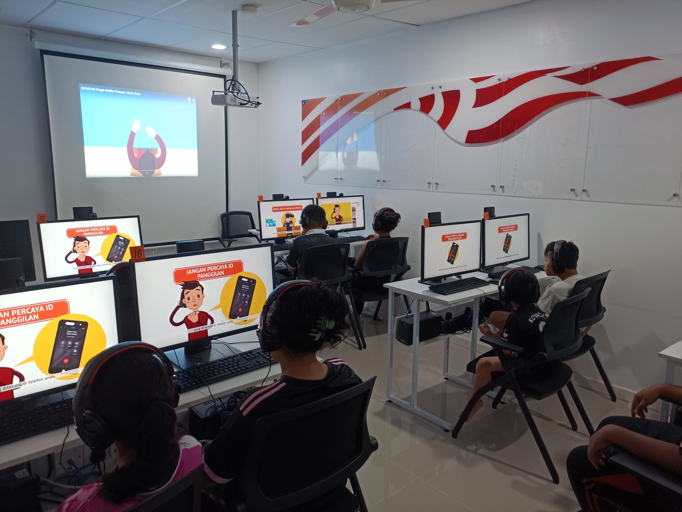 Penerangan melalui tayangan slide dan kanak-kanak diminta untuk menonton video Klik Dengan Bijak (Macau Scam) dan sesi soal jawab.